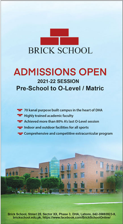 Brick School Lhr Pre-School to Matric Admissions 2021
