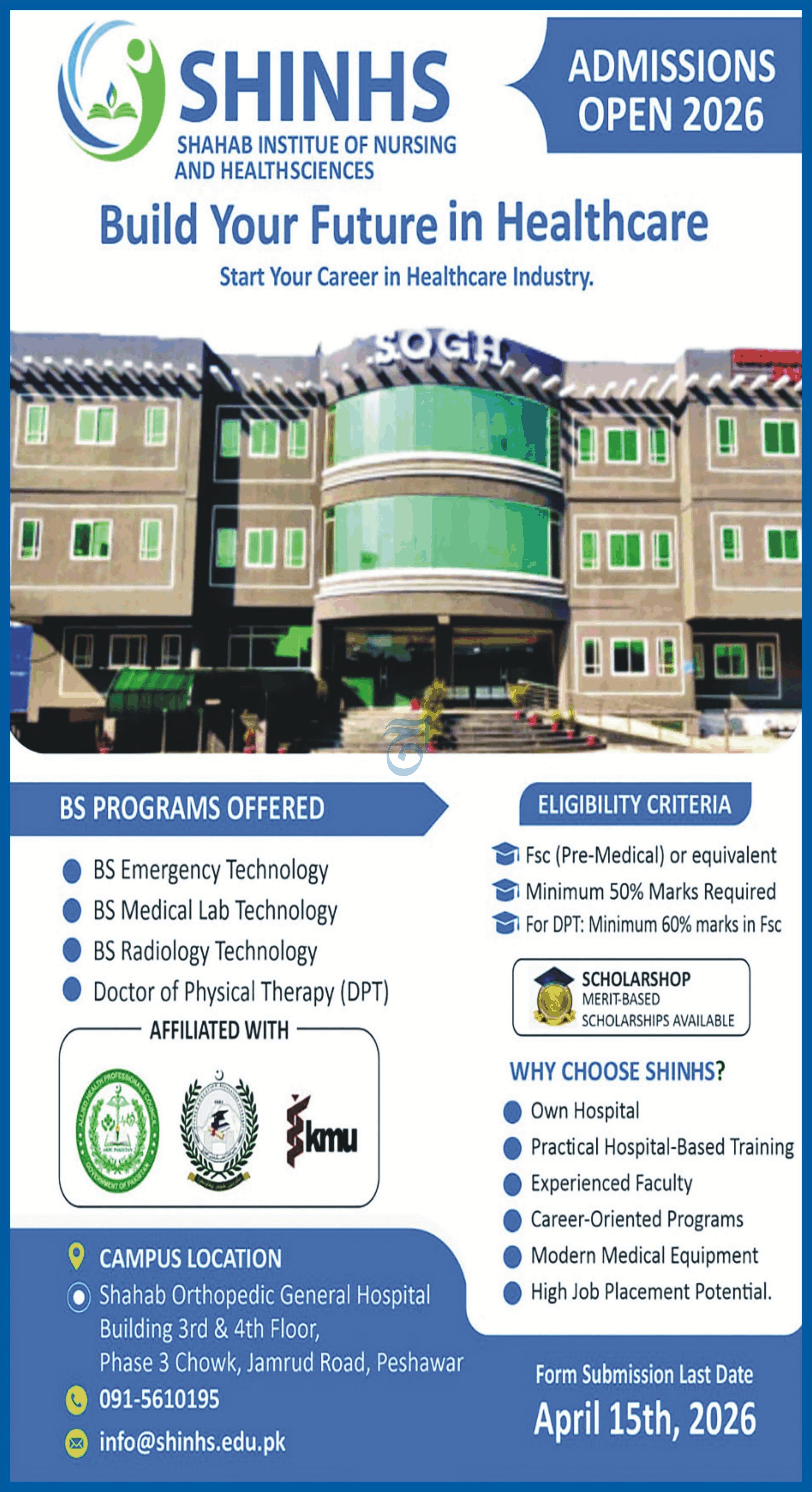 •For BS Programs: FSc Pre-Medical or equivalent with at least 50% marks