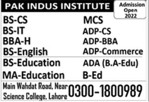 College Administrations have announced Pak Indus Institute Admissions 2022. Students with a strong interest in civil and Computer information technology can enrol in their respective courses by applying for admissions at their Institute. Pak Indus Institute offers a variety of professional courses such as BS CS, BS IT, BS English, BS Education, MA Education, MCS, ADP CS and others. Apply for admission before the admission window closes.