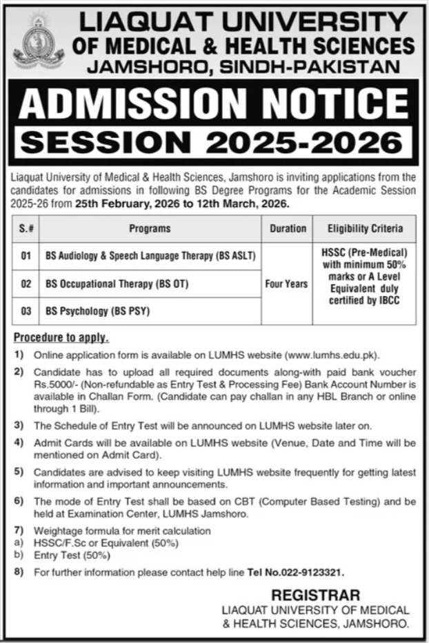 Prospective candidates are encouraged to explore the diverse LUMHS Courses 2026 which are designed to produce skilled professionals in allied health sciences. Interested individuals can now LUMHS Apply Online through the official university portal.