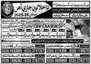 The healthcare sector continues to be a cornerstone of professional stability and service. Blessing Institute of Nursing and Paramedics has officially opened its BINP Admissions 2026 Session 2025-26, offering a variety of medical diploma programs. Registered with the Sindh Medical Faculty and the Government of Sindh, the institute provides a recognized pathway for students aiming to enter the medical field.