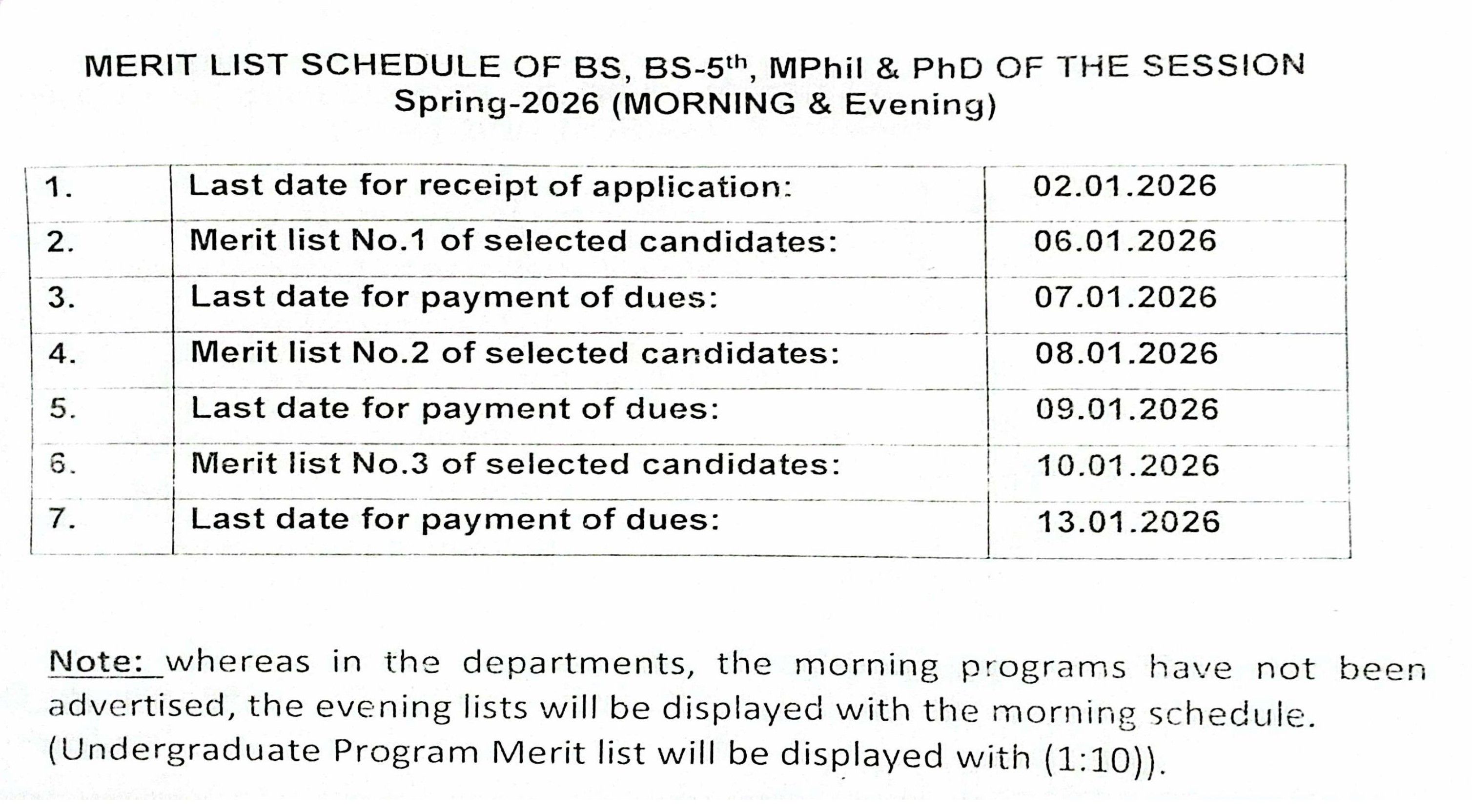 BZU Merit List Schedule for BS, MPhil, PhD for Spring 2026