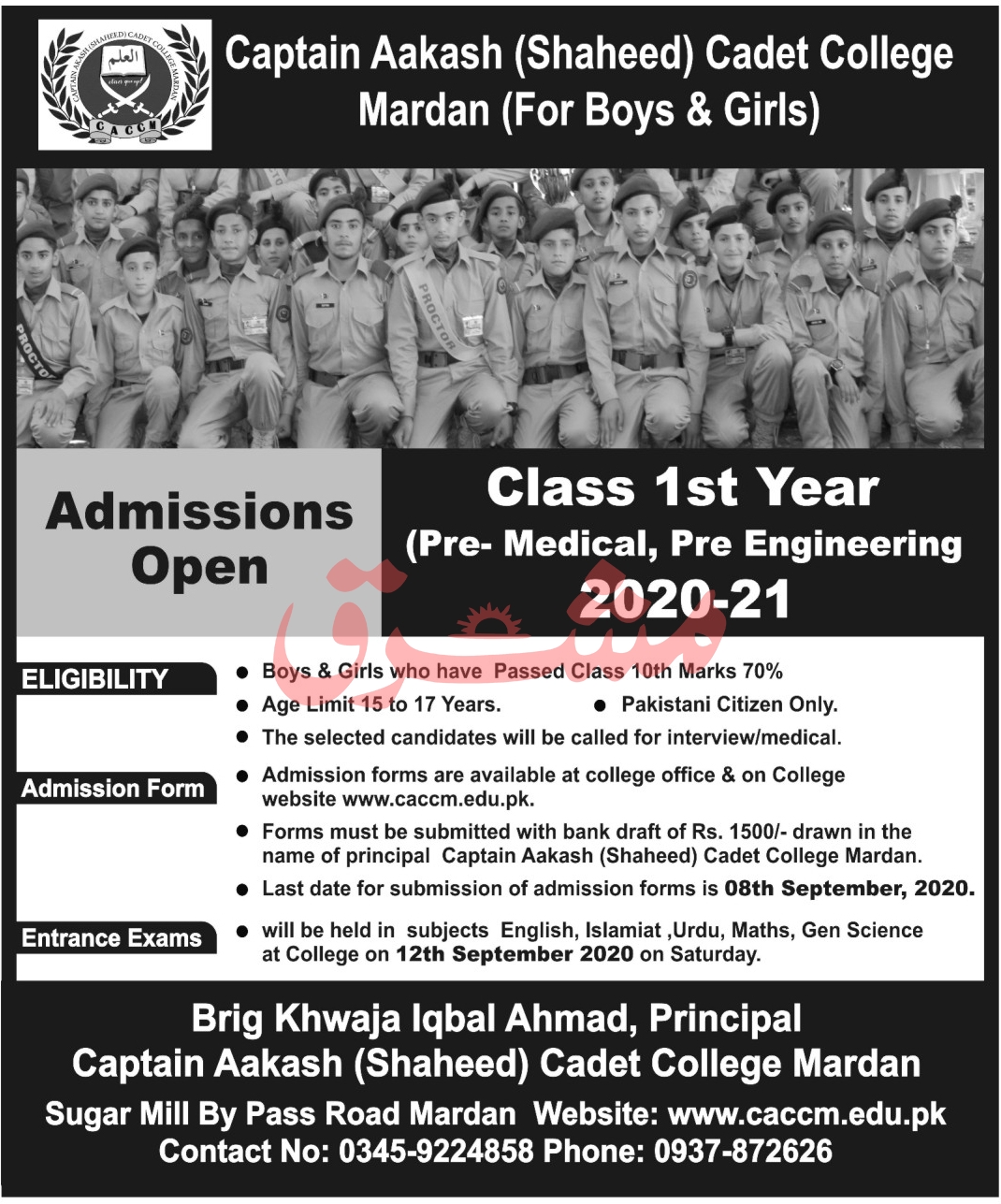 Captain Aakash Shaheed Cadet College Admissions 2020