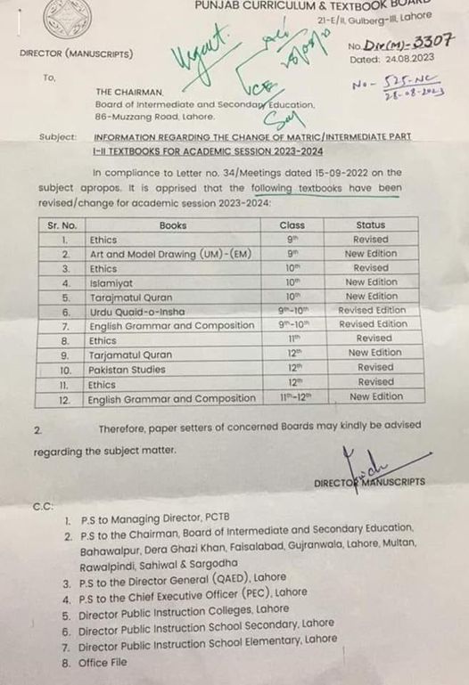 Educators, students, and parents are urged to acquaint themselves with the revised curriculum guidelines and new examination patterns to ensure a seamless transition. The PCTB remains unwavering in its commitment to offering quality education, and these modifications underscore its dedication to nurturing an educational framework that equips students with the skills and knowledge required for success in a rapidly evolving world.