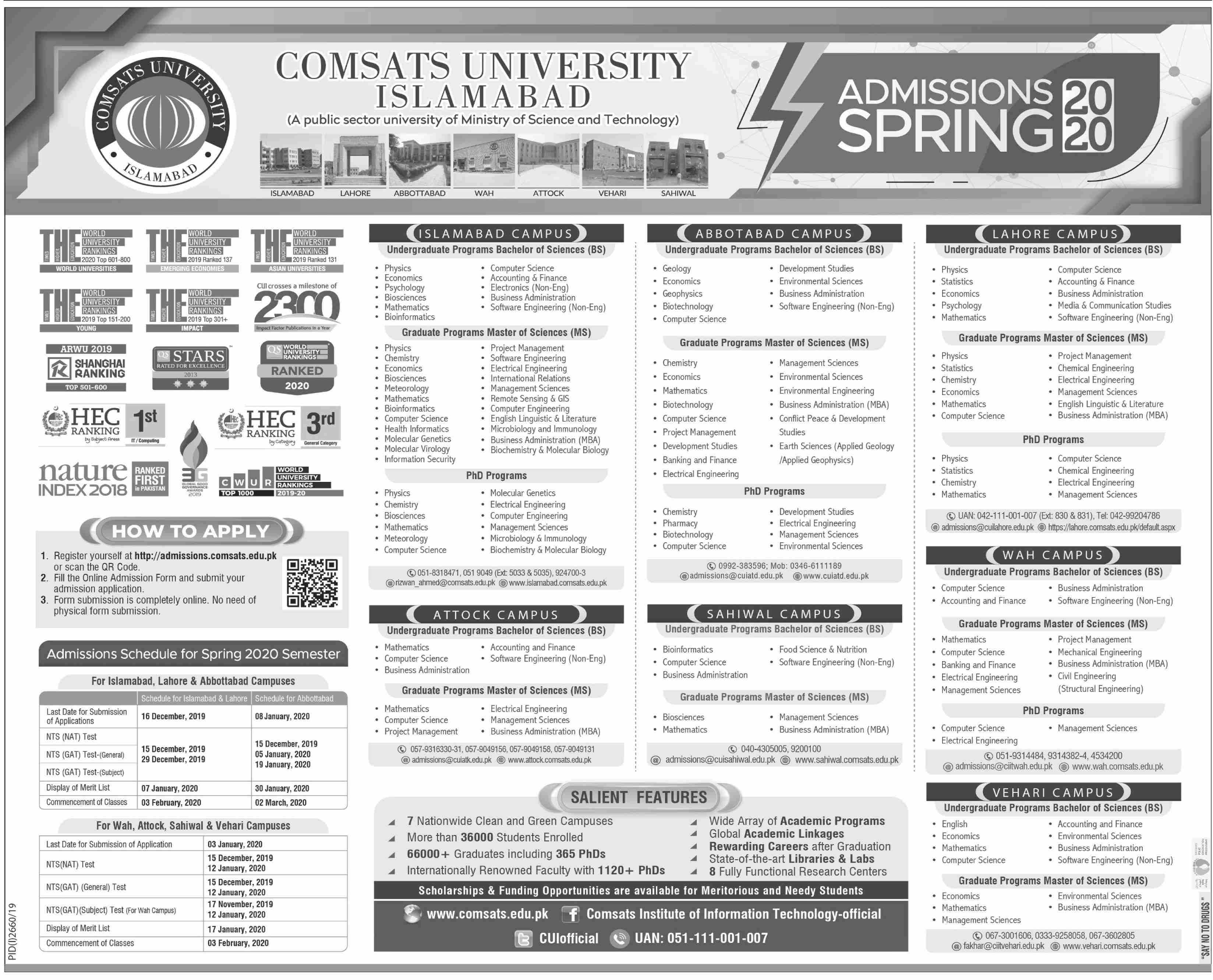 Comsats University Islamabad Admission fall 2020