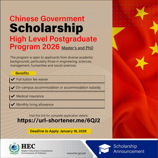 Applicants are advised to carefully review eligibility criteria and prepare their documentation in advance, as the application deadline is January 18, 2026. With support from the Higher Education Commission Government of Pakistan, this CUI Scholarship 2026 provides a direct pathway for students to pursue world-class education in China.