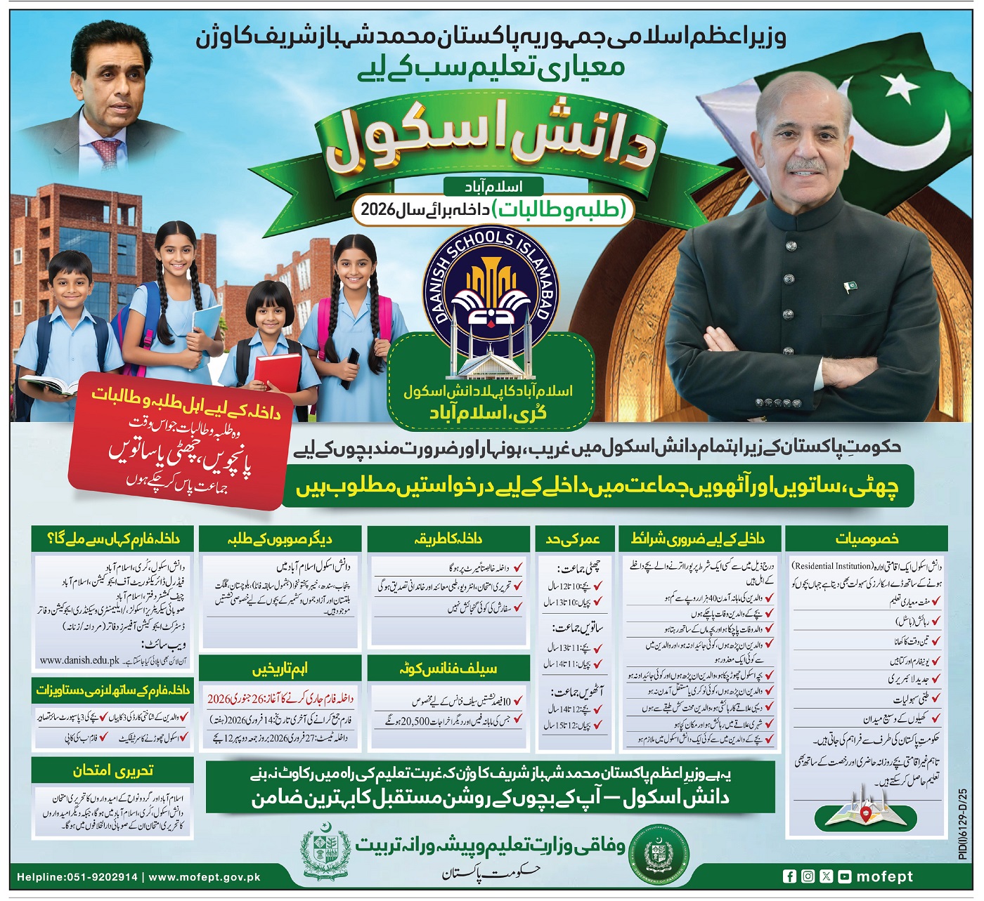 - Apply Online: Visit www.danish.edu.pk to Apply Online or download the form for physical submission by the February 14, 2026 deadline.