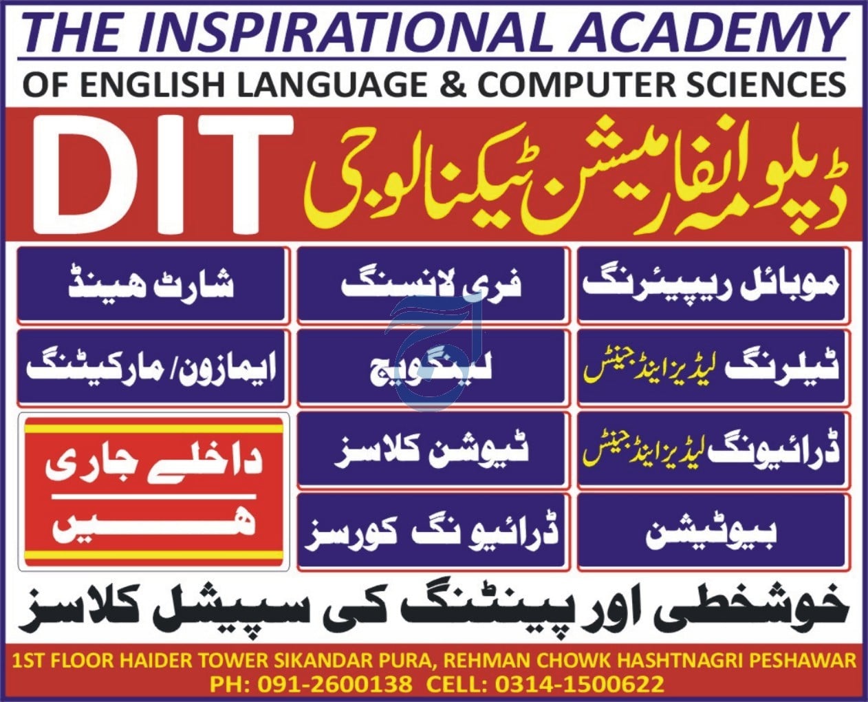The Inspirational Academy of English Language & Computer Sciences is now offering admissions 2026 in a wide range of professional, technical, and skill-based courses. Located in the heart of Peshawar, the academy is dedicated to empowering students with practical skills and modern knowledge to help them succeed in today’s competitive world.