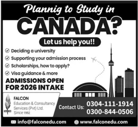Falcon Education & Consultancy Services Pvt Ltd has announced support services for students aiming to pursue higher education in Canada for the 2026 intake. The consultancy provides complete guidance for students who wish to study abroad and need professional assistance throughout the admission process.