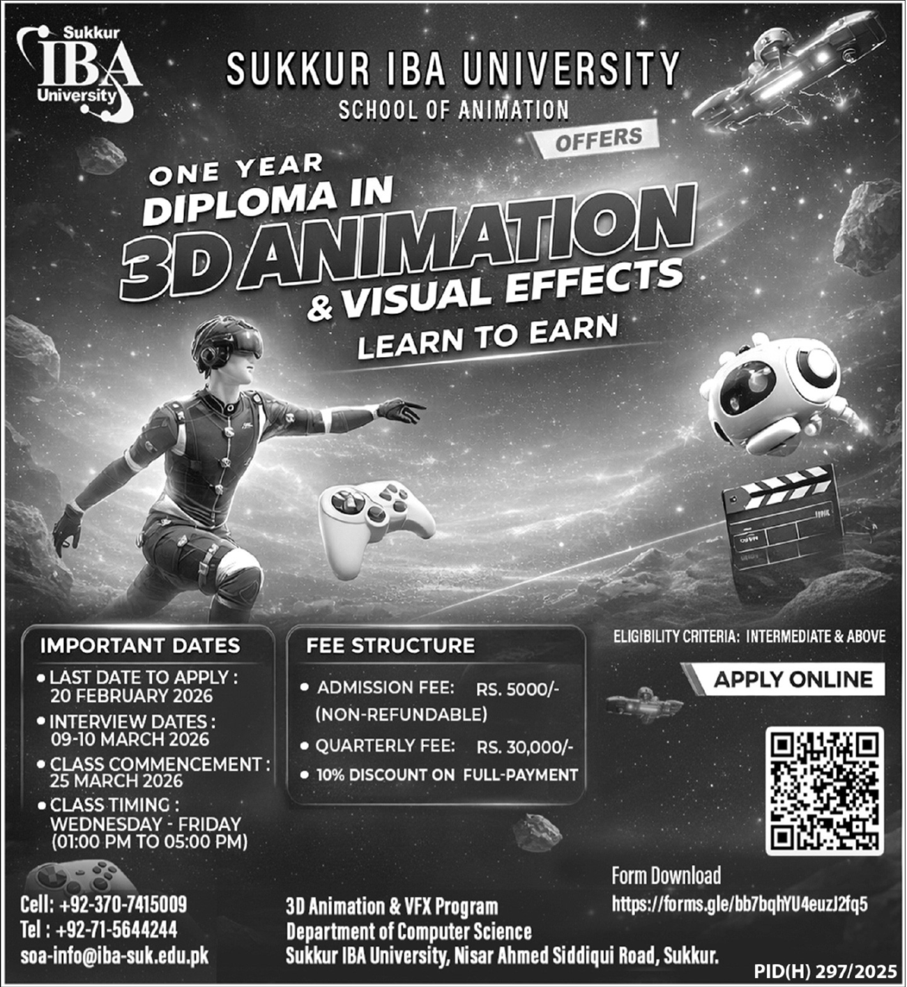 As the global demand for digital content creation surges, Sukkur IBA University has officially announced the opening of its School of Animation. This initiative aims to equip students with market-competitive skills through a rigorous academic framework. The Sukkur IBA Admissions 2026 cycle is now active, inviting applications for a specialized One Year Diploma in 3D Animation & Visual Effects.
