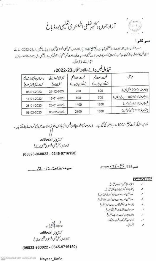 Education Board Bagh 5th & 8th Classes Exams 2022-23 Forms Schedule
