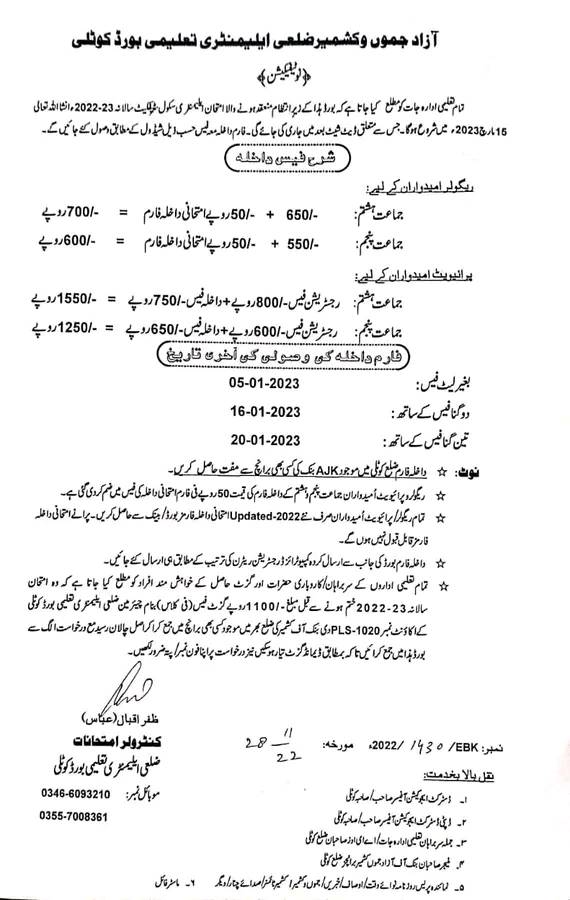 District Kotli Board ESC Annual Exams 2023 Forms Schedule