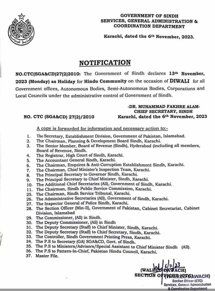 In a recent announcement by the Sindh governments Services, General Administration, and Coordination Department, a special holiday has been declared for the Hindu Community on 13th November 2023 to celebrate Diwali. Diwali Holiday for Sindhs Hindu Community in 2023 on 13 Nov extends to all government offices, autonomous and semi-autonomous bodies, corporations, and local councils. This thoughtful gesture ensures that members of the Hindu Community can fully embrace and enjoy their religious festivities with enthusiasm and fervor.