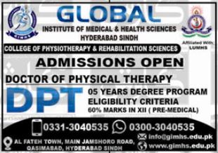 The Global Institute of Medical & Health Sciences has officially announced that admissions 2025 are now open for its prestigious College of Physiotherapy & Rehabilitation Sciences. Located in Hyderabad, Sindh, the institute continues its mission of producing high-caliber healthcare professionals through rigorous academic training and clinical exposure.