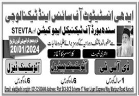 The Edhi Institute of Science & Technology Karachi has opened its admissions for the year 2024, offering courses in Diploma in Information Technology, Auto Mechanic Petrol, and Auto Mechanic Diesel. Aspiring individuals interested in pursuing careers in these specialized fields have until the admission deadline on January 20, 2024, to submit their applications.