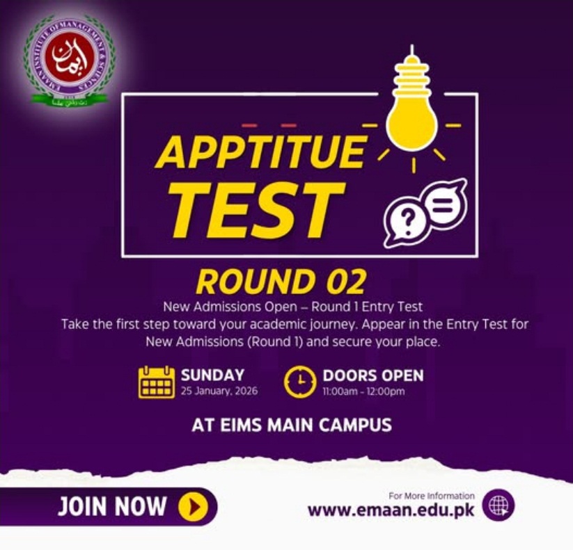 Candidates are advised to prepare thoroughly and arrive on time to avoid any inconvenience. Following the official EIMS Test Schedule 2026 is essential for applicants who wish to secure their place and take the first formal step toward quality education at Emaan Institute Of Management and Sciences, Karachi EIMS.