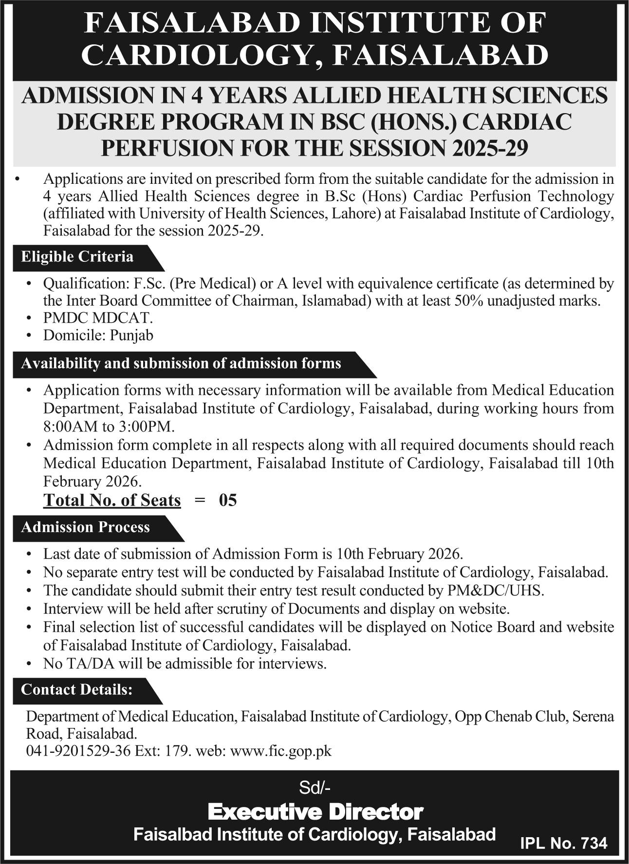 For students in Punjab looking to specialize in the medical field, the announcement of FIC Admissions 2026 represents a golden opportunity. The Faisalabad Institute of Cardiology FIC is offering a B.Sc Hons. in Cardiac Perfusion Technology, a field that is essential to the modern surgical team. This four-year degree program provides the specialized training necessary to manage extracorporeal circulation during open-heart surgeries, making it one of the most vital FIC Courses 2026 for aspiring healthcare professionals.