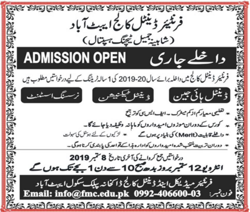 Frontier Dental College Training admissions 2019