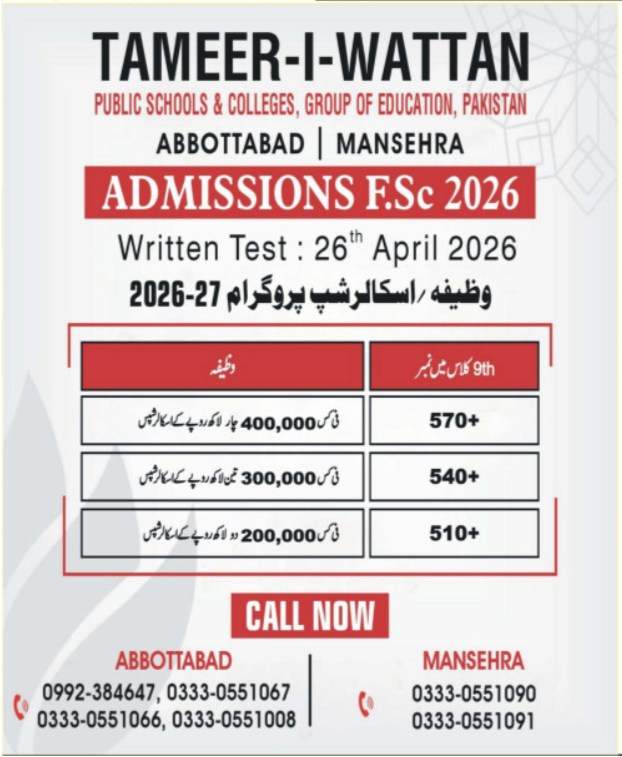 The landscape of intermediate education in Khyber Pakhtunkhwa continues to be led by institutions committed to academic excellence. Tameer-i-Wattan Public Schools & Colleges, Group of Education, Pakistan has officially announced its TW Admissions 2026 for the F.Sc program at its premier campuses in Abbottabad and Mansehra. This announcement is a significant milestone for students seeking a rigorous academic environment that bridges the gap between secondary school and professional higher education.
