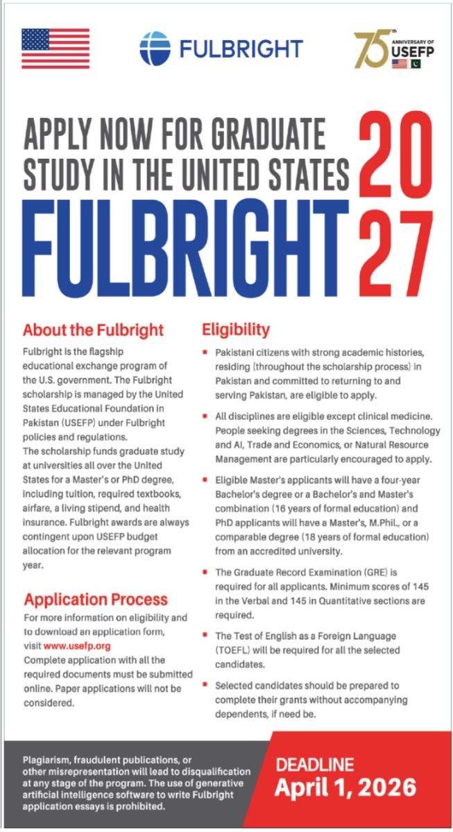 The Fulbright Program is a prestigious international educational exchange initiative sponsored by the Government of the United States. It is managed by the United States Educational Foundation in Pakistan USEFP and offers fully funded opportunities for Pakistani students to pursue graduate-level education in the United States. The students can get the latest updates of Fulbright Graduate Scholarships 2027 Applications Open for Study in the United States.