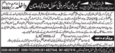 Garison Grammar High School Multan Admission 2020