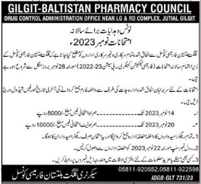 Gilgit-Baltistan Pharmacy Council Exam Schedule 2023