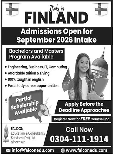 Are you dreaming of an international education in one of the world’s most advanced learning hubs? Falcon Education & Consultancy Services is proud to announce that Falcon admissions 2026 are now officially open for the September intake in Finland. Known for its world-class academic standards and high quality of life, Finland offers an unparalleled opportunity for Pakistani students to pursue Bachelors and Masters Program options in high-demand fields.