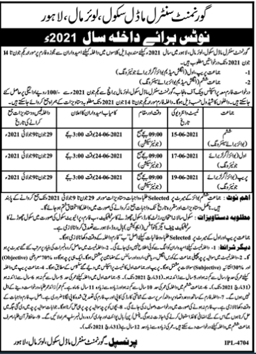 Government Central Model School, Lower Mall, Lahore is seeking Applications for Admissions in Class Prep, One and Six. Application Forms will be accepted from June 01, 2021 to June 24, 2021. Interview will be taken from June 06, 2021 to June 19, 2021. Admissions are open for Session 2021.