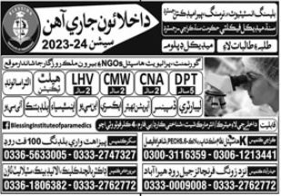 Available Programs: The college is offering diploma programs in LHV Lady Health Visitor, CMW Community Midwifery Worker, CNA Certified Nursing Assistant, and DPT Diploma in Physical Therapy. These programs are designed to equip students with the necessary knowledge and skills required to excel in their respective fields.