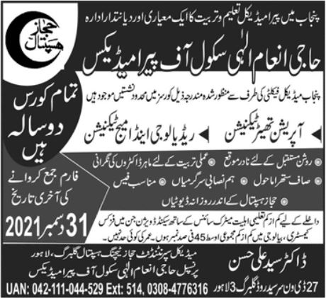 Haji Inam Elahi School Of Paramedics Lahore Courses Admissions 2021-2022