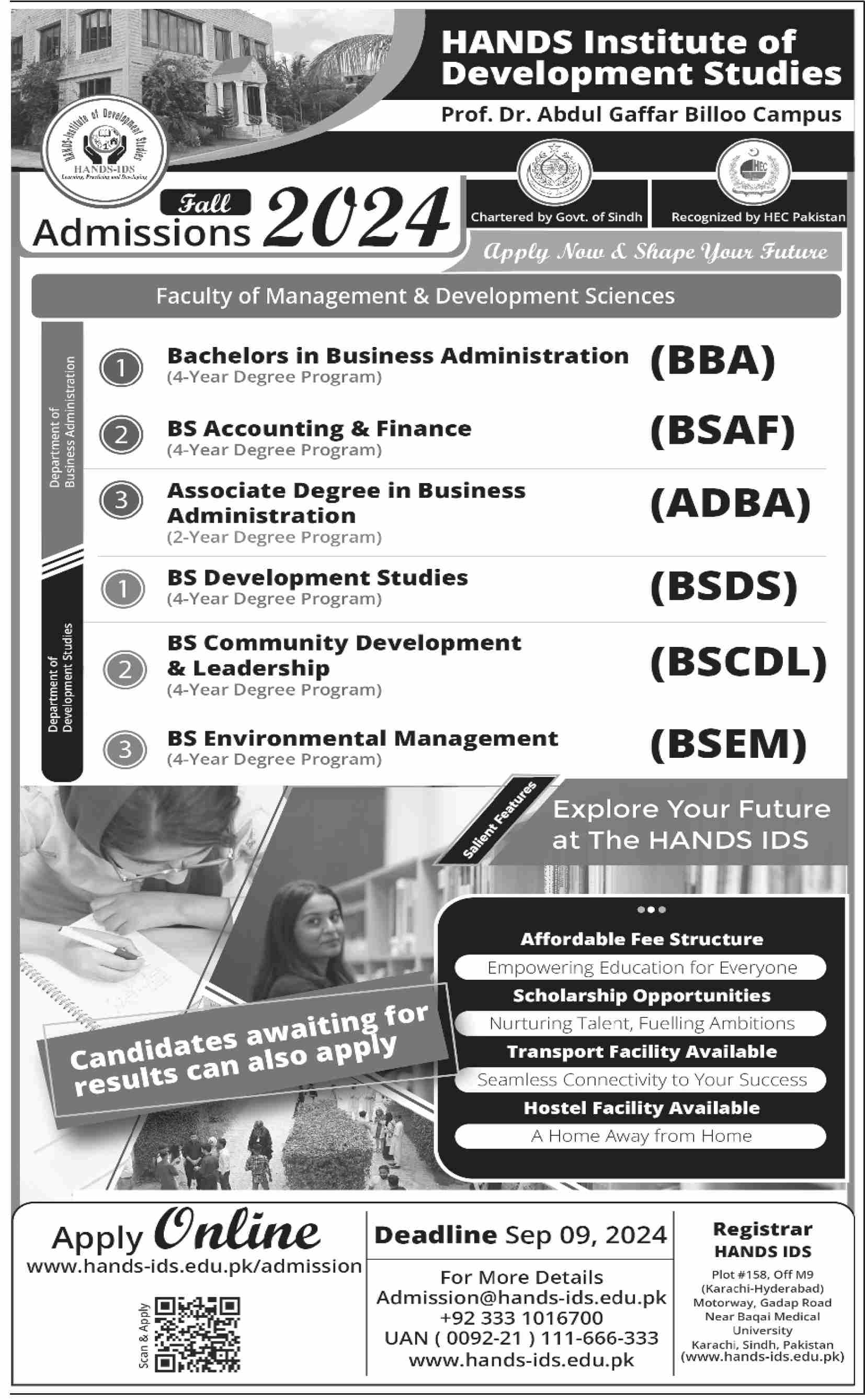 Hands Institute of Development Studies Hands IDS announces its Admissions 2024, offering a range of undergraduate programs designed to equip students with essential skills and knowledge.
