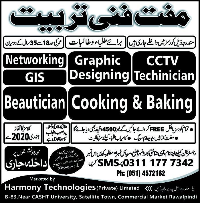 for the session of 2020. The Harmony Technologies Rawalpindi has now starts the Admission