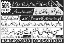Hassan Education Institute of Health Sciences is delighted to announce admissions for the year 2023 in their highly sought-after Pharmacy Technician program. Aspiring students keen on pursuing a rewarding career in the healthcare field can now seize this opportunity and apply for admission 2023. However, it is crucial to act promptly as the admission date draws near. To secure a spot in this esteemed institute, applicants must submit their Admission applications as soon as possible before the closing date. The Pharmacy Technician classes at Hassan Education Institute promise comprehensive training and a nurturing environment, ensuring students are well-equipped to meet the challenges of the healthcare industry. Dont miss the chance to be a part of this exceptional educational journey and take the first step towards a promising future in health sciences.