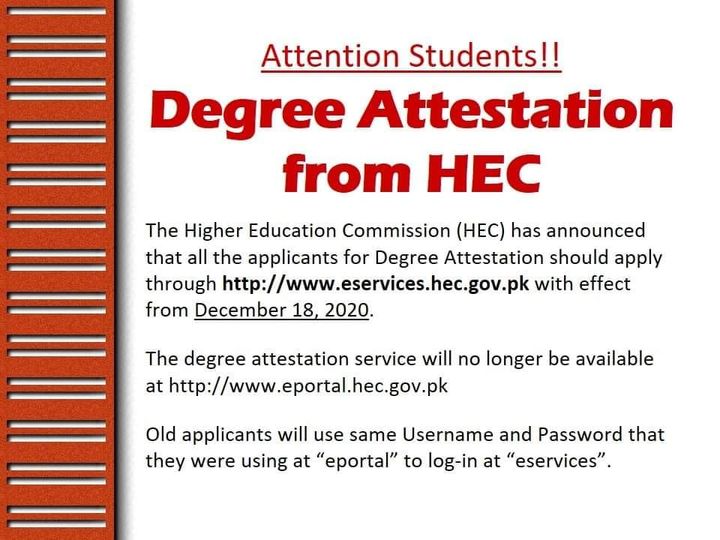 Higher Education Commission has announced the new procedure for the attestation of the degree of higher classes and the aspiring candidates apply through the portal of HEC, which is shared online instead of the previous portal from 18-12-2020. The candidates should follow the HEC Degree Attestation Applying Procedure 2020 and the degree attestation service will not be offered on the previous portal. The old applicants will also the same username and the passwords to apply for the attestation of degrees.