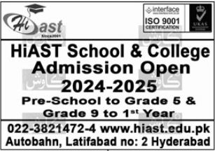 HIAST School & College Admission Open 2024-2025 offers a unique opportunity for students from Pre-School to Grade 5 and Grade 9 to 1st Year. With a curriculum designed to foster creativity and critical thinking, HIAST aims to provide an enriching learning experience for all age groups. The institution is equipped with modern facilities and a highly qualified faculty to ensure that students receive the best education possible.
