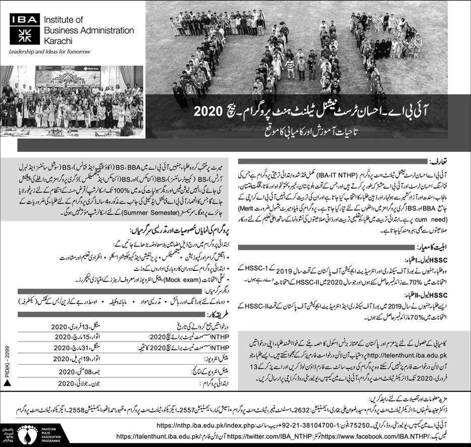 IBA Ehsan Trust National Talent Hunt Scholarship 2020