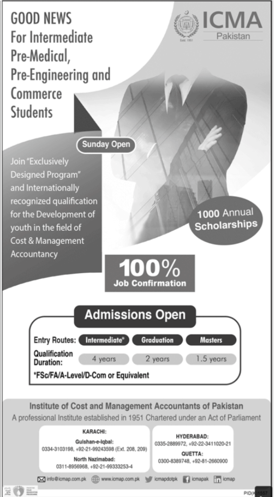 Institute of Cost and Management Accountants of Pakistan Karachi Admissions 2019