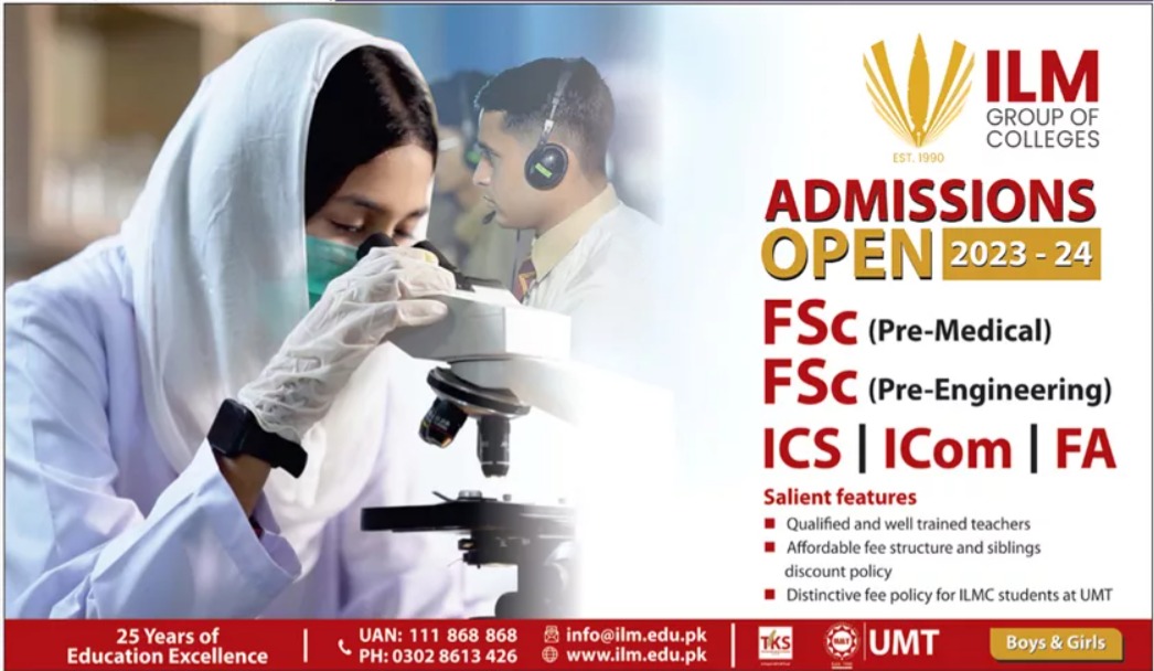 ILM Group of Colleges proudly announces admissions for the year 2023, offering students a chance to access exceptional education under the guidance of qualified teachers. Known for its commitment to excellence, the institution is dedicated to fostering academic growth and holistic development.