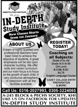 In-Depth Study Institute Grade 6-12th BSc admissions 2020