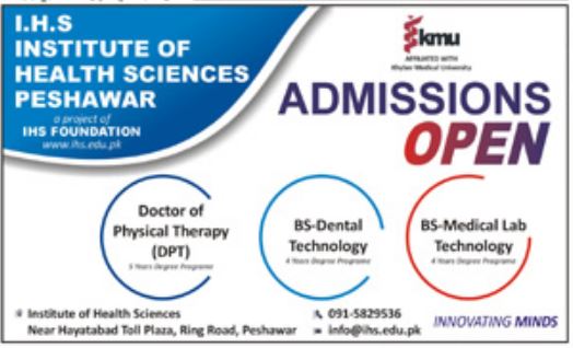 Institute of Health Sciences Peshawar has offered admissions for BS In Dental Technology, Medical Lab Technology, DPT Doctor of Physical Therapy.