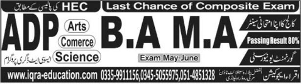 Iqra Education announced the Admission for the session of 2020. The Iqra Education has now starts the Admission in the ADP.