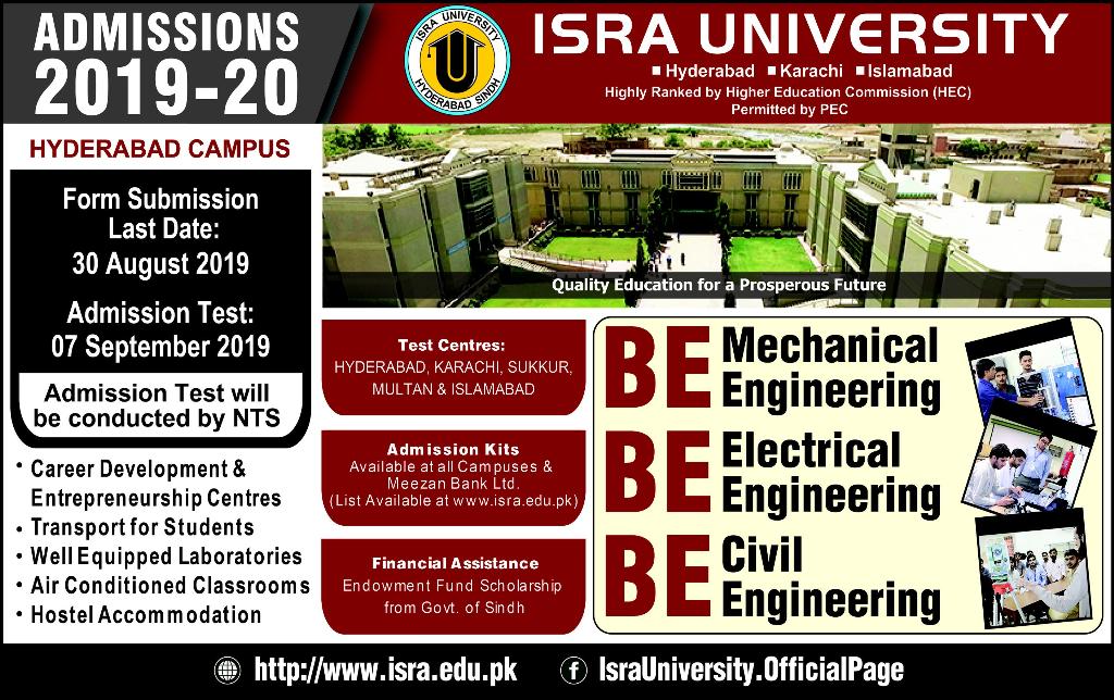 Isra University BE admissions 2019