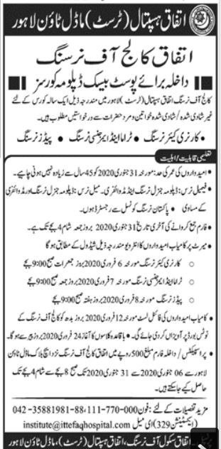 for the session of 2020. The Itfaq College of Nursing Lahore has now starts the Admission