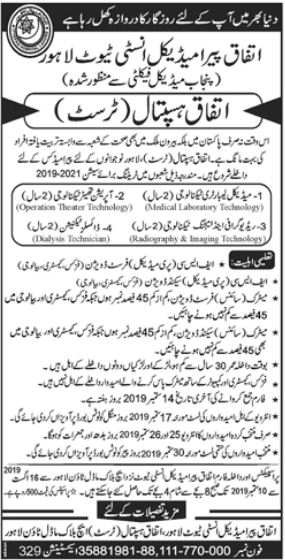 Ittefaq Paramedical Institute Lahore Admissions