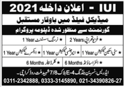 IUI Karachi has offered Admission in various courses physiotherapy (2 years) and Nursing assistant ( 1 year), C.T scan Technician (1 year), Emergency Technician ( 1 Year), X-Ray Technician ( 1 year), Ultrasound (6 Months) and Color Doppler ( 6 Months). Admissions are open