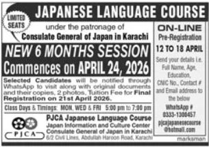 Consulate General of Japan in Karachi, through the Japan Information and Culture Center JICC, has announced admissions for a 6-month Japanese Language Course. This program is being offered under official patronage, providing a valuable opportunity for individuals interested in learning the Japanese language and culture.