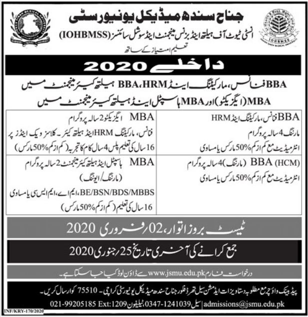 Jinnah Sindh Medical University BBA Admission 2020