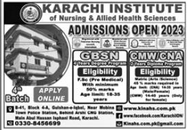 Karachi Institute of Nursing and Allied Health Science GBSN CMW Admissions 2023