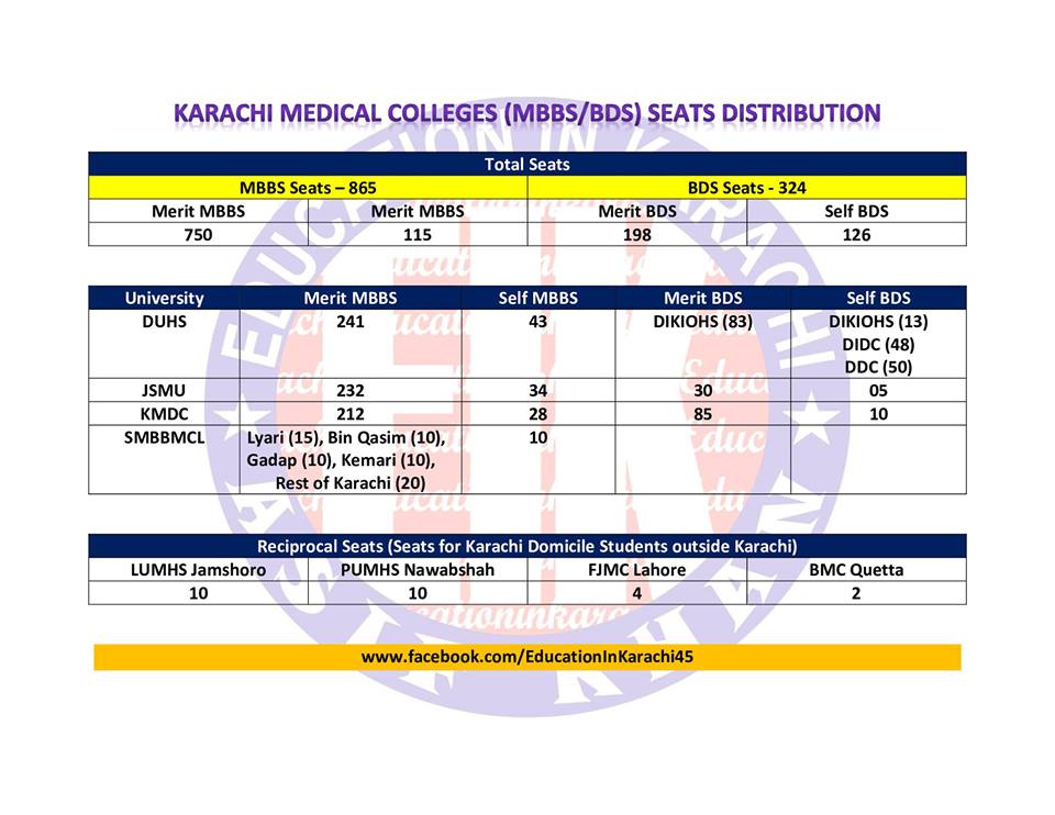 Karachi Medical Colleges Seats Distribution MBBS/BDS