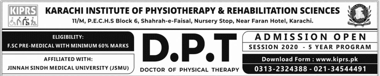 Karachi Institute of Physiotherapy & Rehabilitation Science DPT Admission session 2020